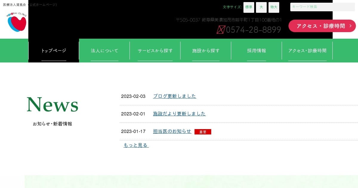 林医院09:00~12:00, 16:00~19:00(※土曜 09:00~13:00)。受付 08:30~12:00, 15:30~19:00。休診:日曜・祝日・水曜・土曜午後林クリニック(医療法人清風会)は、岐阜県美濃加茂市で内科・循環器科を中心に地域医療の中核を担う医院です。デイケアや訪問看護等と連携し、医療と福祉を一体的に提供して在宅支援まで対応します。料金(税込) -詳細を見る公式サイトを見る