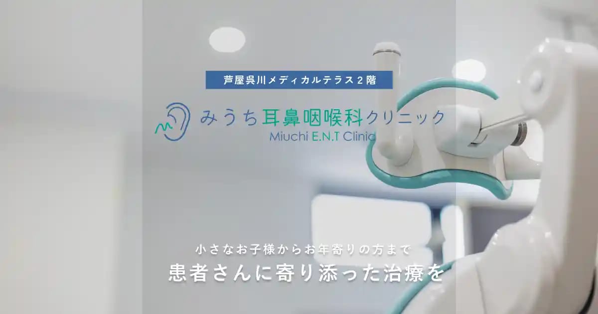 みうち耳鼻咽喉科クリニック09:00~12:30, 15:00~18:00(休診:水曜・土曜午後・日祝、14:00~15:00は予約検査・処置のみ)ファイバー内視鏡でモニターに画像を映して丁寧に説明し、コーンビームCTで精密診断。小児から高齢者まで幅広く対応し、睡眠時無呼吸症候群の診療に注力。駐車場サービス券やウェブ順番予約で通院しやすい芦屋の専門クリニックです。料金(税込) -詳細を見る公式サイトを見る