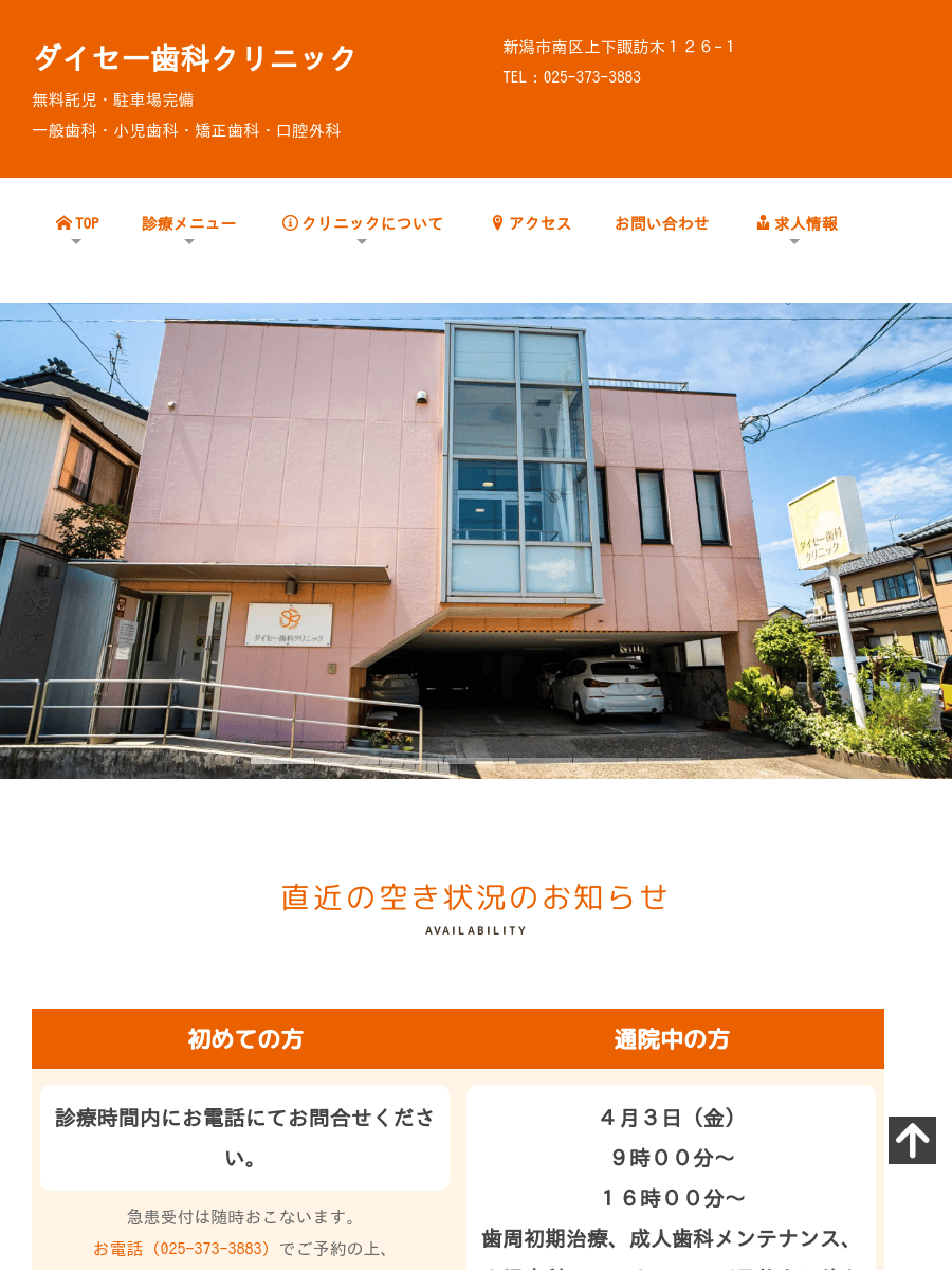 ダイセー歯科クリニック09:00~13:00,14:30~18:00(土 09:00~17:00、休診: 木・日・祝)保育士常駐で託児を無料提供する家族向けの歯科医院。院内はバリアフリーで赤ちゃんから高齢者まで通いやすく、いびき・睡眠歯科外来を新設しレーザー治療等に対応しています。料金(税込) -詳細を見る公式サイトを見る