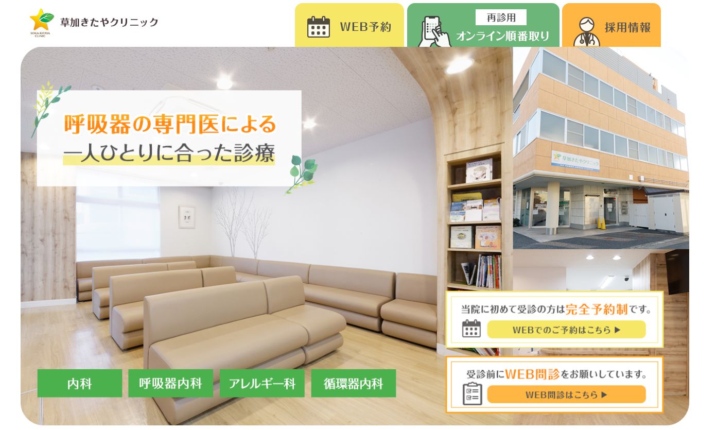 草加きたやクリニック平日 9:00~12:30 / 15:00~18:30(受付は診療終了30分前まで)/土曜 9:00~12:30 / 13:30~16:00/休診: 水曜・日曜・祝日呼吸器専門医による精密診断と個別治療が強み。院内にマルチスライスCTや呼気NOなどの検査機器を備え、睡眠時無呼吸の検査・治療を一貫して提供します。WEB予約や駐車場完備で通院しやすく、地域のかかりつけとして生活に合わせた治療提案を行います。料金(税込) -詳細を見る公式サイトを見る