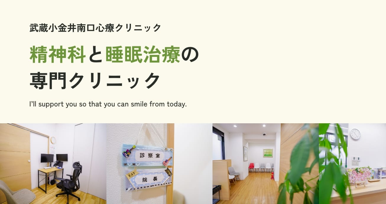出典:武蔵小金井南クリニック 公式サイト武蔵小金井南クリニック武蔵小金井駅から徒歩3分再診:09:00-12:00 / 13:30-18:30(※土曜は18:00まで、金・日休) 初診:09:00-11:30 / 13:30-18:00(※土曜は17:30まで)武蔵小金井駅徒歩3分で予約不要の精神科・睡眠外来。自宅で行える無呼吸検査から治療まで対応し、精神科医と看護師による相談窓口を備えた地域密着の診療所です。公式サイトを見る
