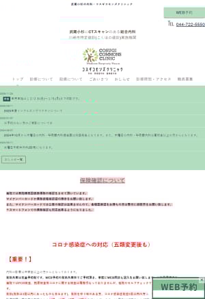 コスギコモンズクリニック武蔵小杉駅から徒歩4分月〜金 9:00-13:00, 14:30-18:30/土 9:00-13:00/日 休診武蔵小杉のコスギコモンズクリニックは、全身CTや睡眠時無呼吸検査を備え、呼吸器・脳神経外科の専門医が連携して診療。駅徒歩4分で通院しやすく、WEB予約・問診で待ち時間を短縮できる点が選ばれる理由です。専門的な検査と幅広い診療に対応しています。料金(税込) -詳細を見る公式サイトを見る