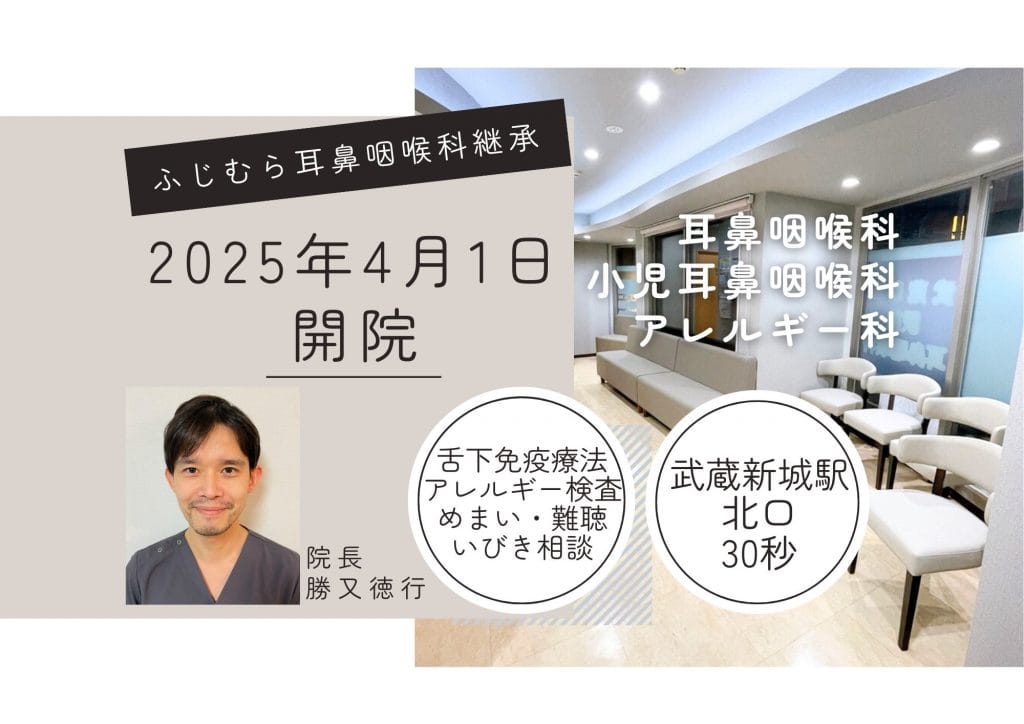出典:武蔵新城駅前耳鼻咽喉科 公式サイト武蔵新城駅前耳鼻咽喉科武蔵新城駅から徒歩1分月・火・水・金 午前 9:00~12:30 / 午後 15:00~18:30(受付は診察終了の30分前まで) 木曜 午前 9:00~12:30 / 午後 14:30~17:00 土曜 午前 9:00~13:00 発熱外来 平日 12:50~13:00 休診 日曜・祝日・土曜午後武蔵新城駅北口から徒歩30秒の好立地にある耳鼻咽喉科。日本耳鼻咽喉科学会専門医が小児から高齢者まで幅広く診療し、いびきや睡眠時無呼吸症候群の相談に応じる地域密着のかかりつけ医です。感染対策や明細書発行にも対応しています。公式サイトを見る