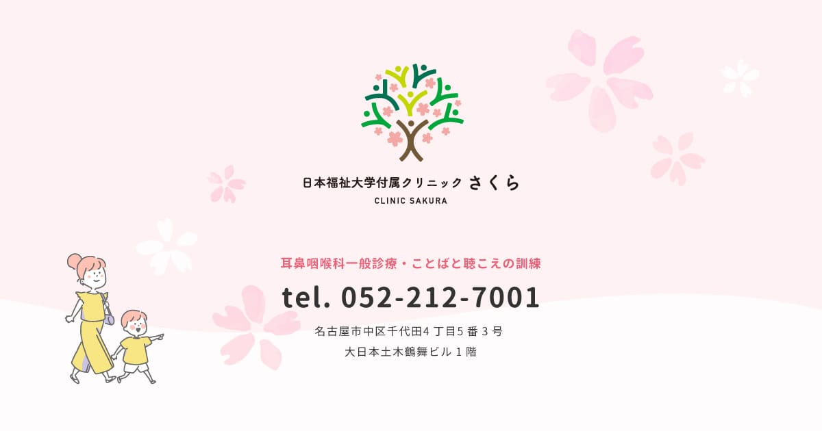 出典:日本福祉大学付属クリニックさくら 公式サイト日本福祉大学付属クリニックさくら鶴舞駅から徒歩8分月火水木金土 09:00~12:00、月火木金 14:00~18:00(※水曜午後・土曜午後・日曜・祝祭日休診)日本福祉大学付属の信頼ある耳鼻咽喉科で、言語聴覚リハビリや補聴器調整と連携して診療を実施。睡眠時無呼吸の検査・CPAP療法に対応し、専門的で個別の治療を受けられます。公式サイトを見る