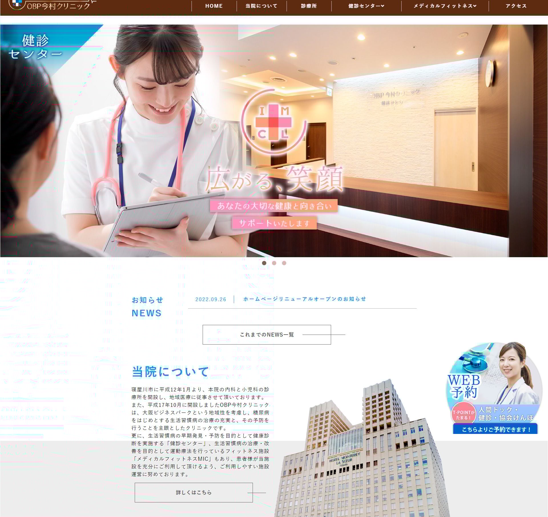 出典:OBPメディカルクリニック 公式サイトOBPメディカルクリニック京橋駅から徒歩5分診療:月〜金 09:30~12:30、(月)14:00~16:00、月・木・金 17:00~19:00(休診:火曜午後・水曜午後・土日祝)大阪ビジネスパーク内にある内科クリニック。糖尿病や生活習慣病の予防・管理を専門とし、健診センターと連携した睡眠検査やメディカルフィットネスによる運動療法で生活改善を総合的に支援します。公式サイトを見る